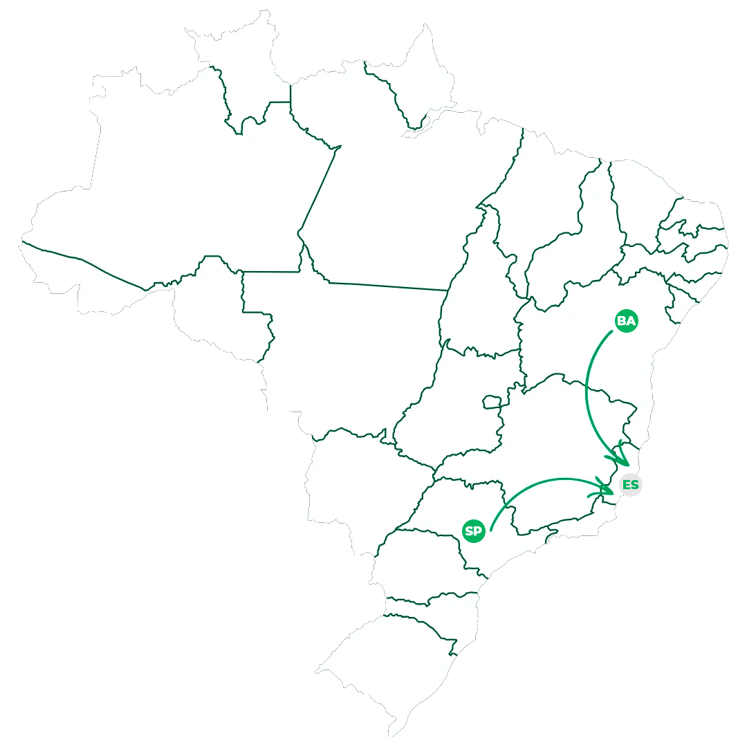 Especialistas nas rotas partindo do ES e SP para os principais polos produtivos do Brasil.